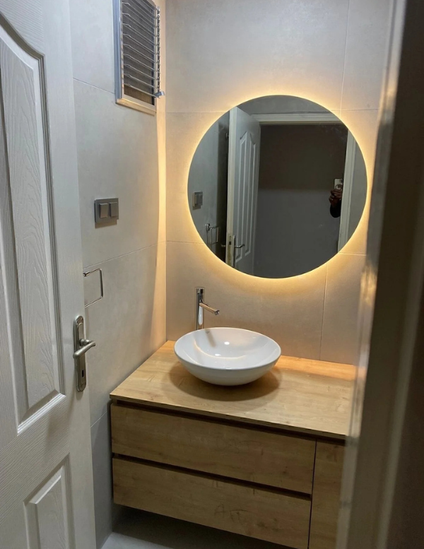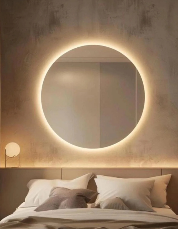 Oglindă Desire cu diametrul de 60 cm și LED-uri.; Produsele noastre sunt oglinzi ŞİŞECAM autentice de calitate premium, fabricate din Flotal premium de 4 mm.; Un suport de perete este tăiat la unghiuri de 45 de grade pentru agățarea pe perete.; Toate marginile oglinzii sunt șlefuite.; Procesul de împământare netezește marginile oglinzii, făcând-o strălucitoare și transparentă.; Oglinda are un model decorativ creat prin prelucrare CNC.; Spatele este fabricat din materiale de calitate premium. Se utilizează LED-uri cu 10 cipuri.; Se utilizează un transformator de 5A 60W.; Produsul nostru este livrat cu un adaptor de 2 metri și este gata de utilizare imediată.; Dacă se dorește, adaptorul poate fi scos și produsul poate fi conectat la rețeaua electrică a locuinței folosind transformatorul situat pe spatele produsului.; Produsul este ambalat special folosind CARCASĂ DIN LEMN pentru a preveni deteriorarea în timpul transportului.; Diblurile și șuruburile pentru agățarea pe perete sunt incluse în oglindă.; O cârpă ușor umedă poate fi folosită pentru curățare.