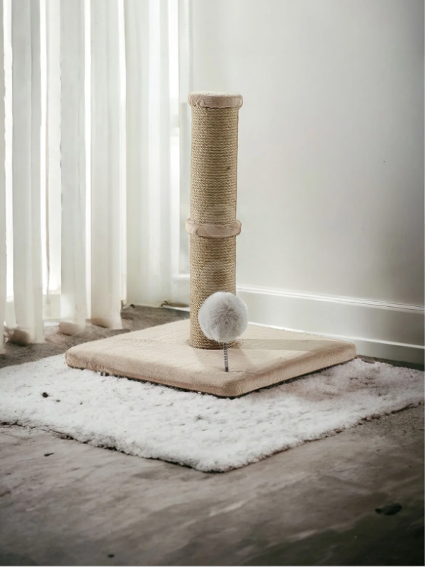 Katre Luxury Cat Scratching Post and Pom-Pom ToyYou will receive the exact product shown in the image.; Certificate: Our products are made of "OEKO-TEX STANDARD 100" certified fabrics.; The ropes used are one-piece, preventing the ropes from unraveling during scratching.; Product Features:Width: 45 cmLength: 45 cmHeight: 56 cmWeight: 4.6 kg100% hemp ropes.; Premium Quality Plush Wellsoft Fabric.; Shipped unassembled.; Installation diagrams are shipped together with the products.; Easy to install.; Stain-resistant and easy to clean.; The sponge used for the upholstery is comfortable and soft.; Spring pom-pom toy.; Our products are made of "OEKO-TEX STANDARD 100" certified fabrics.; Certificate: Our products are made of "OEKO-TEX STANDARD 100" certified fabrics.; Ideal for Comfortable Beds and Blankets: Wellsoft fabrics are an excellent choice for creating comfortable beds and blankets for your pets.; Softness and Comfort: With their microfiber texture, Wellsoft fabrics ensure a pleasant resting experience for your pets.; Protects Sensitive Skin: Especially suitable for pets with sensitive skin, these fabrics stand out with their skin-friendly structure.; Warmth: Keeps your pets warm in cold weather, ensuring their comfort and convenience.; Durability and Easy Cleaning: Wellsoft fabrics are durable and long-lasting.; They are also practical with their easy-to-clean features.; WellSoft fabrics are the best choice for the happiness and comfort of our pets.; Scratching Area: Covered with 100% hemp ropes, this provides an ideal surface to satisfy cats' scratching instincts.; Furthermore, the texture of the hemp ropes makes them prefer scratching.; Fun Design: The pom-poms on the surface of the product provide an additional attraction for your cat.; While playing with the pom-poms, your cat will both have fun and satisfy their needs by using the scratching area.; and Safe Materials: The product is designed to be healthy for your cats.; All the materials used are and safe, so your cat can use it with ease.; Durable Material: Katre has a durable construction and is designed for long-term use.; This ensures your cat can enjoy using the product for a long time.; Ideal for indoor cat owners.; It's a perfect option for meeting your indoor cats' scratching needs and providing exercise.