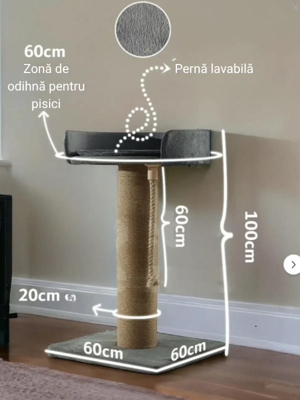 Skye Luxury Cat Scratching Post, Rope Toy, Cushioned Rest AreaYou will receive the exact product shown in the image.; Certificate: Our products are made of OEKO-TEX STANDARD 100 certified fabrics.; The ropes are one-piece, preventing them from unraveling during scratching.; Product Features:Width: 60 cmLength: 60 cmHeight: 100 cm100% hemp ropes.; Premium Quality Plush Wellsoft Fabric.; Shipped unassembled.; Installation diagrams are shipped together with the products.; Easy to install.; Stain-resistant and easy to clean.; The upholstery is soft and comfortable.; Our products are made of premium quality WellSoft Fabric.; Certificate: Our products are made of OEKO-TEX STANDARD 100 certified fabrics.; Ideal for Comfortable Beds and Blankets: Wellsoft fabrics are an excellent choice for creating comfortable beds and blankets for your pets.; Softness and Comfort: With their microfiber texture, Wellsoft fabrics ensure your pets have a pleasant resting experience.; Protects Sensitive Skin: Especially suitable for pets with sensitive skin, these fabrics stand out with their skin-friendly structure.; Warmth: Keeps your pets warm in cold weather, ensuring their comfort and convenience.; Durability and Easy Cleaning: Wellsoft fabrics are durable and long-lasting.; They are also practical with their easy-to-clean features.; WellSoft fabrics are the best choice for the happiness and comfort of our pets.; The Skye Cat Scratching Post with Long Scratching Post and Cushioned Resting Area is the perfect product to meet your cats' scratching needs and allow them to rest comfortably.; The long scratching post allows your cats to naturally wear down their claws, while the cushioned resting area on top provides a relaxing environment for your cats.; Cushioned Resting Area on Top: The cushioned resting area on top of the scratching post is the ideal place for your cats to rest and sleep comfortably.; The soft cushion ensures a comfortable rest.; Durable Material: The product is made of durable and high-quality materials.; This ensures its longevity and is an ideal option for your cats' safety.; Compact Design: The Skye Cat Scratcher with Long Scratching Post and Cushioned Resting Area has a compact design and can be easily placed in any corner of your home.; Ease of Use: The product is easy to assemble and clean.; It comes with a user manual and is simple to install.